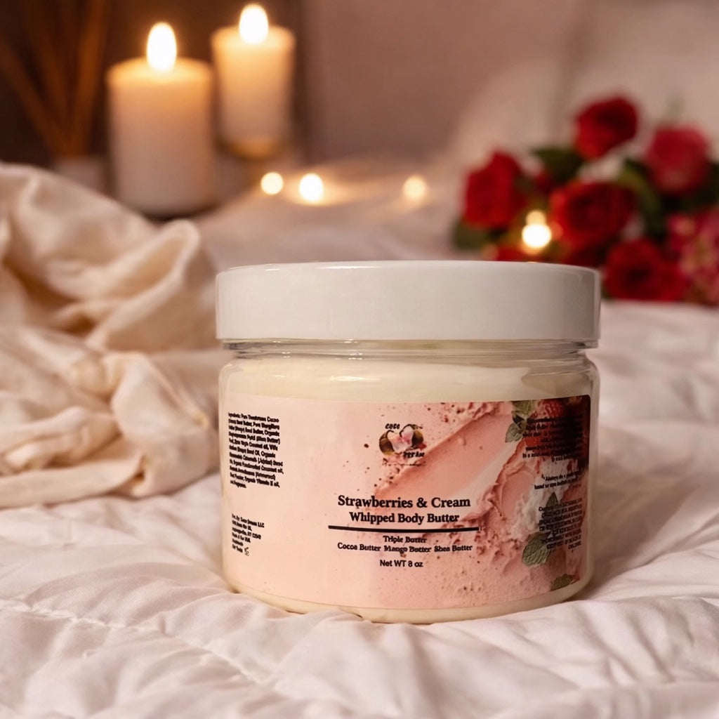 Fall in love with deeply nourished skin this Valentine’s Day with our Strawberries & Cream Triple Body Butter. Crafted with a rich blend of cocoa butter, mango butter, and shea butter, this decadent formula melts into your skin, delivering long-lasting moisture and an irresistible strawberries-and-cream scent. It’s the perfect way to indulge in romance, softness, and luxury—because love should feel this smooth. 💖🍓